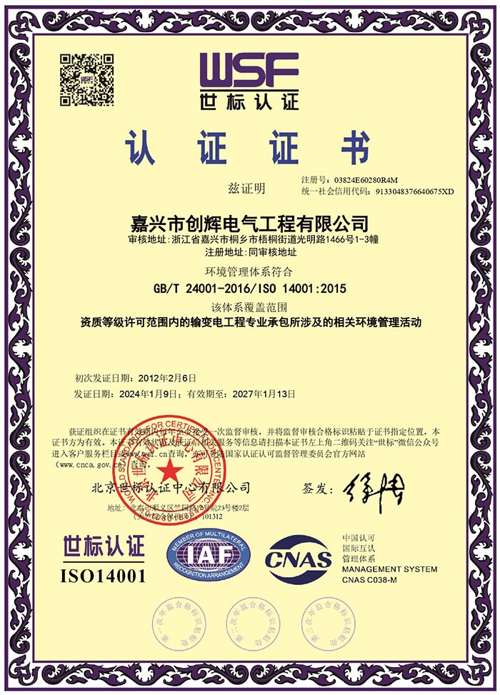 At present, our company has the power engineering general contracting grade II, power transmission and transformation engineering professional contracting grade II qualification, city and road lighting engineering professional contracting grade II qualification, installation (repair, test) power facilities license grade II qualification, building construction safety production license, is a high-tech enterprises in Zhejiang Province, the province of AAA grade “abide by the contract and trustworthy” enterprise.